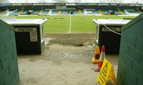 The title of this blog post refers to the motto of Yeovil Town and, last night, it felt very relevant. We achieved three points by uniting with the Yeovil players. Or Yeovil united with us by ensuring they fluffed their lines on the limited occasions the home side should have capped their second half performance with an equaliser. It was a great night in the end though, and made the long trip excellent. I must admit, however, that my journey home was barely long as I embarked on a car trip to a friend's house near Gillingham (that's Dorset not the hellhole in Kent).Huish Park has the famous adjacent beer tent which we frequented pre-match and, it has to be said, makes a mockery of places like the Enigma in Milton Keynes. The entertainment was not the quality it had been down in Yeovil last season but it is probably the best beer tent in Division Three and, should we win promotion, it will be sorely missed.